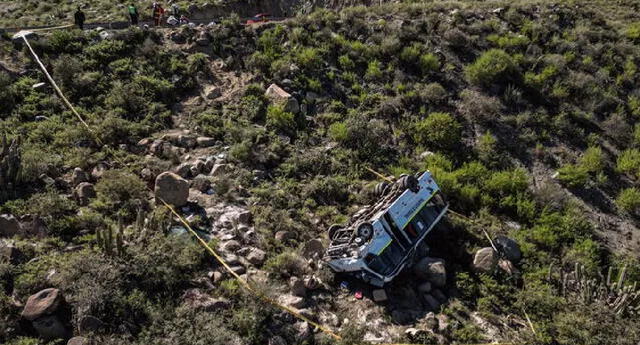 Un total de 22 pasajeros que se encontraban en un bus de transporte de turistas, se salvaron de morir luego de que la unidad se desbarrancara y diera varias vueltas de campana en el kilómetro 19 del sector de Hornillos, en la provincia de Yarabamba en Arequipa.