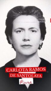 Dentro de este último grupo, el parlamento nacional recordó a la piurana Carlota Ramos de Santolaya, hija de don Enrique Carmen Ramos Briceño y doña Mercedes Ríos Pasapera, una de las primeras congresistas nacionales, luego que se permitiera la ciudadanía y el voto a las mujeres.