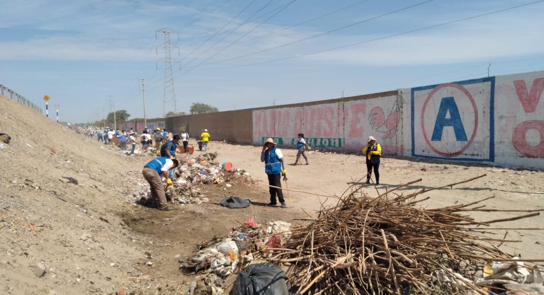 Lo obreros de limpieza de la Unidad de Gestión de Residuos Sólidos (UGRS) de la Municipalidad de Piura e integrantes de la Iglesia de Dios “Sociedad Misionera Mundial”, recogieron 25 toneladas de residuos sólidos, tras limpiar la margen derecha de la vía de evitamiento, desde el bypass (La Legua) hasta el parque Kurt Beer.