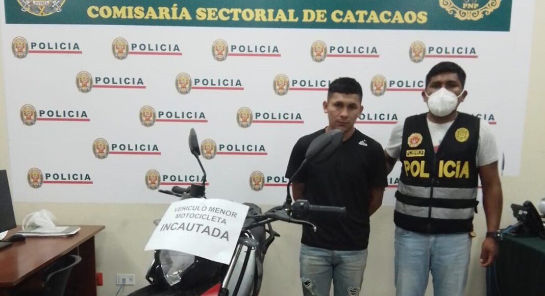 Agentes de la comisaría de Catacaos intervinieron a una persona quien, presuntamente, habría participado en el asalto y robo a un transeúnte de la Heroica Villa. Los policías incautaron además una motocicieta.