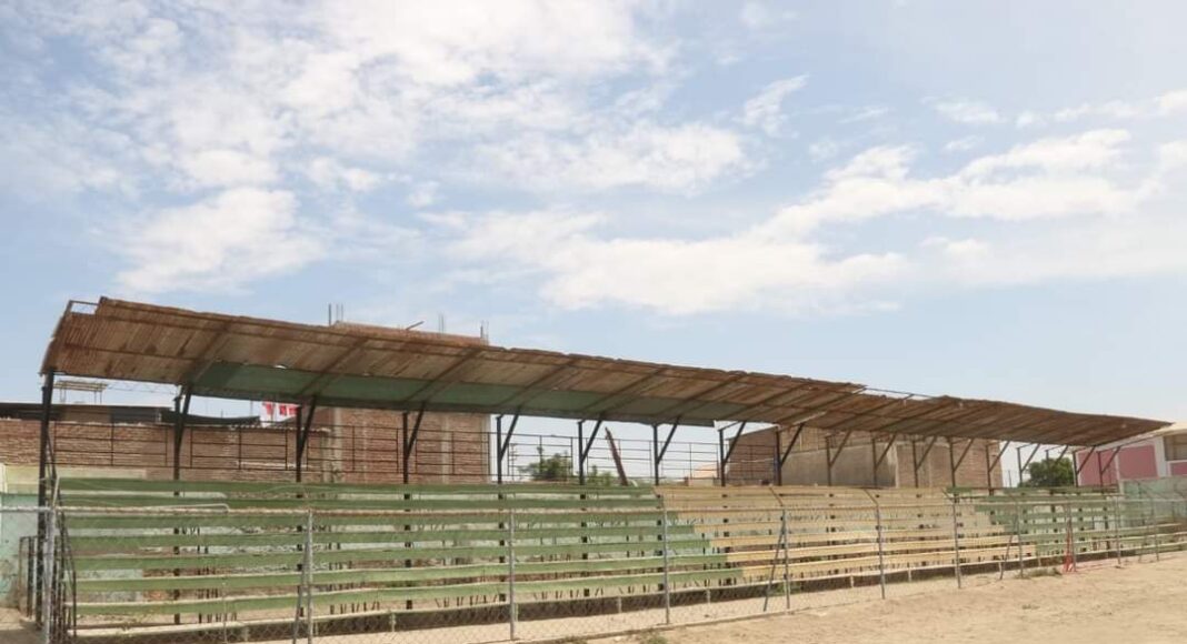 Además, la rehabilitación de servicios higiénicos, instalaciones eléctricas, iluminación interior con reflectores, pisos, dos portones, reparación y pintado de cerco perimétrico exterior, instalación de 6,791.04 m2 de gras sintético, entre otros.