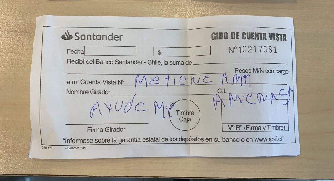 Un hombre logró salvarse de sus secuestradores gracias a un mensaje de auxilio que dejó en un formulario de giro en el banco. La víctima de los delincuentes estaba siendo obligado a retirar una millonaria cifra en un banco en Chile.